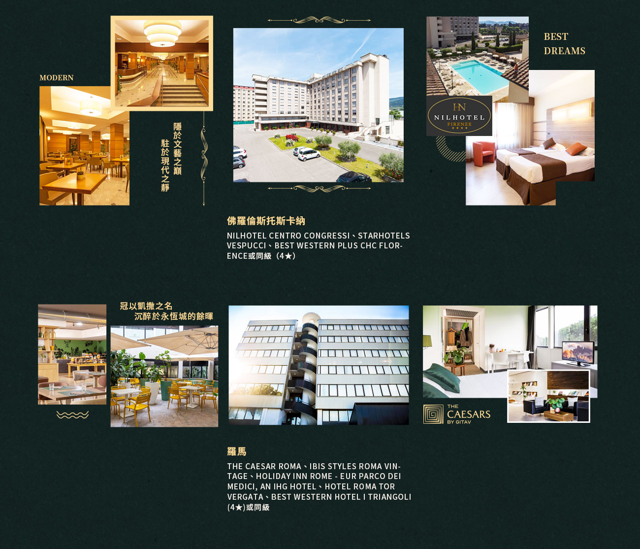 住宿:THE CAESAR ROMA、IBIS STYLES ROMA VINTAGE、HOLIDAY INN ROME - EUR PARCO DEI MEDICI, AN IHG HOTEL、HOTEL ROMA TOR VERGATA、BEST WESTERN HOTEL I TRIANGOLI (4★)或同級