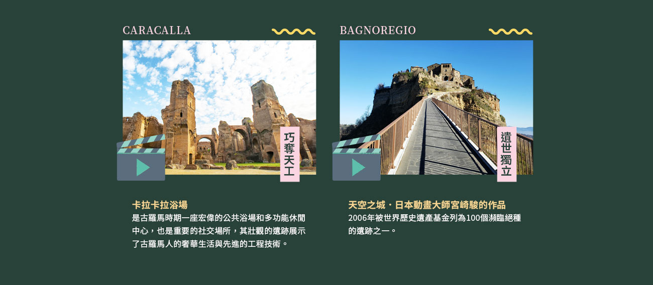 是羅馬規模宏大、功能多元的古羅馬公共浴場,建於公元212-216年,不僅提供沐浴,更是社交、運動和文化中心,設有冷熱水浴室、圖書館、運動場和商店,規模可容納兩千人,如今是羅馬重要的歷史遺跡和旅遊景點,遊客可從斷垣殘壁中感受古羅馬的奢華與生活。
