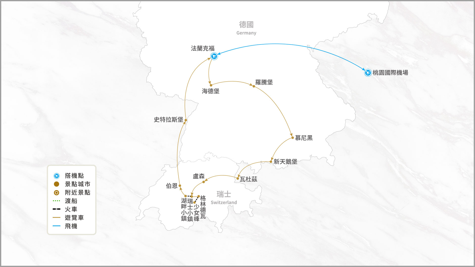備註:(若遇新天鵝堡休館,則改參觀郝恩斯瓦格城堡,若遇兩城堡都休館時則以退費每人10歐元,敬請見諒,每年12/24.25.12/31及1/1 新天鵝堡關閉無法前往請見諒。)