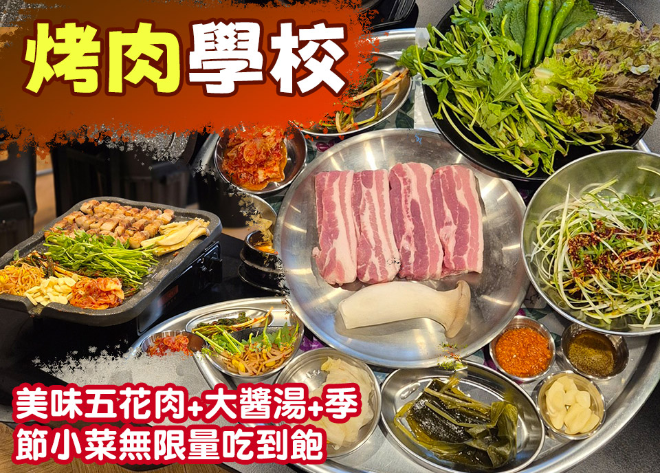 午餐:★部落客推薦★烤肉學校~美味五花肉+大醬湯+季節小菜無限量吃到飽