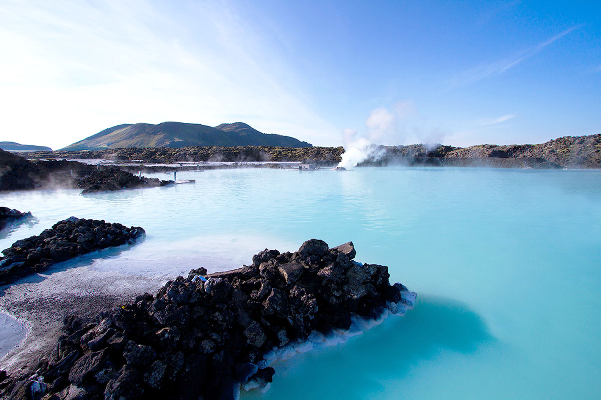 冰島因為地熱的關係有很多溫泉,但這處藍色溫泉湖可是最特別的一個,利用旁邊地熱發電廠發電後降溫的泉水,排放到火山熔岩包圍的窪地,形成了一處人工湖泊,經過多年的發展,成為冰島最具規模的泡溫泉勝地。溫泉水溫度控制在37~39度C,由於水源不斷注入,約40小時就會換新一次,而泉水發源自2千米深的海底,富含礦物質、二氧化矽、硫磺、藻膠等元素,對於輕微的皮膚疾病具有一定的療效。造訪的遊客僅需準備泳裝即可輕鬆享受泡湯的樂趣,湖邊放置許多天然火山泥供遊客邊敷臉邊做SPA,還有三溫暖、蒸汽浴,按摩水療等…,更可邊泡湯邊喝點飲品,欣賞周邊天然夢幻的美景。聞名的藍色溫泉湖更被《國家地理雜誌》評選為「世界25大奇蹟」之一。