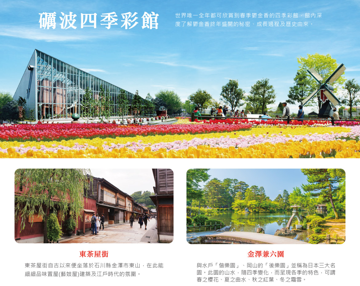 桃園國際機場/小松空港→日本三大名園~金澤兼六園→東茶屋街~漫步江戶風情小巷→礪波