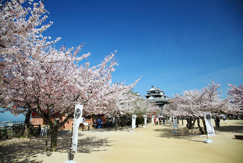 【松山城】(賞櫻預估時間3月下旬~4月上旬)百大名城,與姬路城、和歌山城共列為日本「三大連立式平山城」,也是日本僅存12天守中,海拔最高的城堡,其城樓、乾櫓、戶無門等21棟建築,更被評定為「日本國家級重要文化遺產」。除了大天守閤外還有數個小天守閤亙相連接,看起來更為壯觀,在天守閤的最上層可以360度欣賞整個城市的風景。