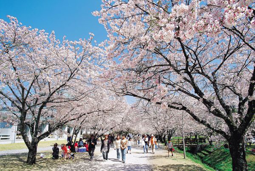 【鏡野公園】(賞櫻預估時間3月中旬~3月下旬)公園於1978年開園,設有多用途廣場、散步道與綠林步區,適合野餐與親子同遊。公園境內種植約600株櫻花樹,包括染井吉野櫻與八重櫻,櫻花盛開時,整座公園被粉白櫻花環繞,最具代表性的「櫻花隧道」全長約200公尺,兩側櫻花交織成浪漫花廊,是遊客與攝影愛好者的熱門打卡點。