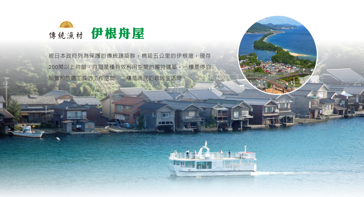 【伊根灣遊船】全日本最美麗的十八個村莊之一。目前伊根的船屋被日本政府列為保護的傳統建築群將永遠保存這個區域的美麗,在海上更可以清楚看到這個日式小魚村的模樣。棉延五公里的伊根灣,現存舟屋200間以上,舟屋是種有效利用空間的獨特建築,一樓是停泊船隻和放置工具的工作空間,二樓是漁民的起居生活間,因而被選定為重要的建造物群保存地區。