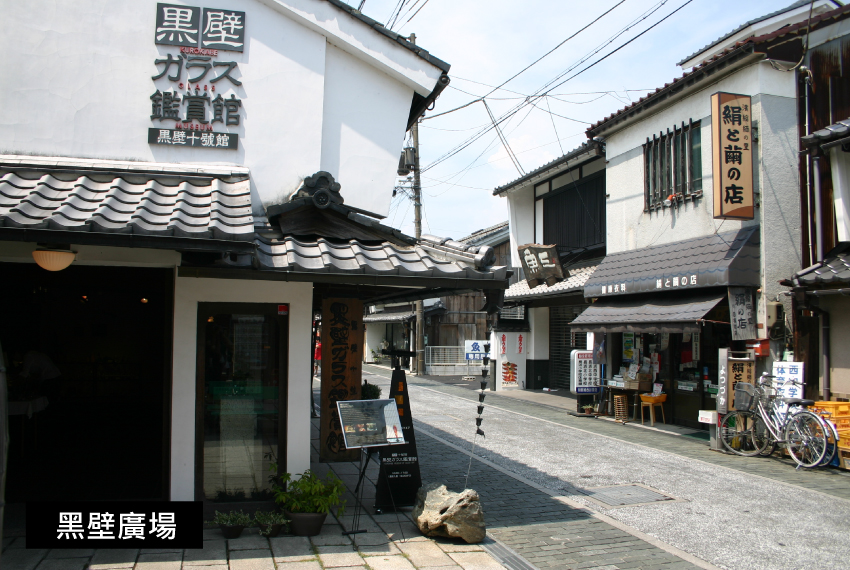 【黑壁廣場】是一處融合歷史建築與現代藝術的觀光地,中心建築為1900年建造的舊銀行,外牆漆成醒目的黑色,故得名黑壁,街區內洋溢復古氛圍。廣場內有30多棟明治時期古民家改建的店舖與藝廊,包含玻璃藝術館、音樂盒館與特色咖啡廳等,其中最具代表性的「黑壁一號館」展示並販售精緻玻璃工藝品。