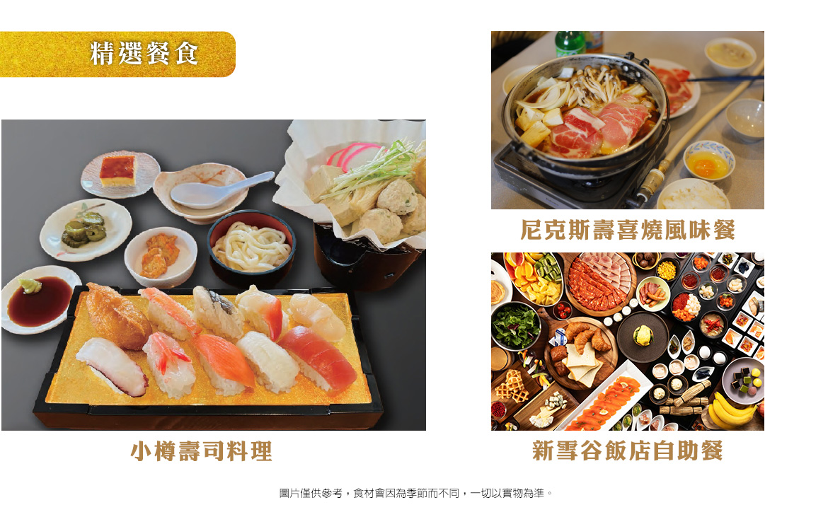 ※素食旅客請注意:由於疫情後日本餐廳人力短缺,廚師主要工作為提供餐廳常規餐食,對於素食恐無法精心料理,故須以餐廳所提供之內容為主,餐廳不接受現場指定或增加菜餚(例如炒一盤青菜等),如擔心料理不合口味,敬請旅客自備罐頭素食備用,敬請理解配合,謝謝。