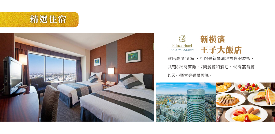 住宿:新橫濱王子 或同等級