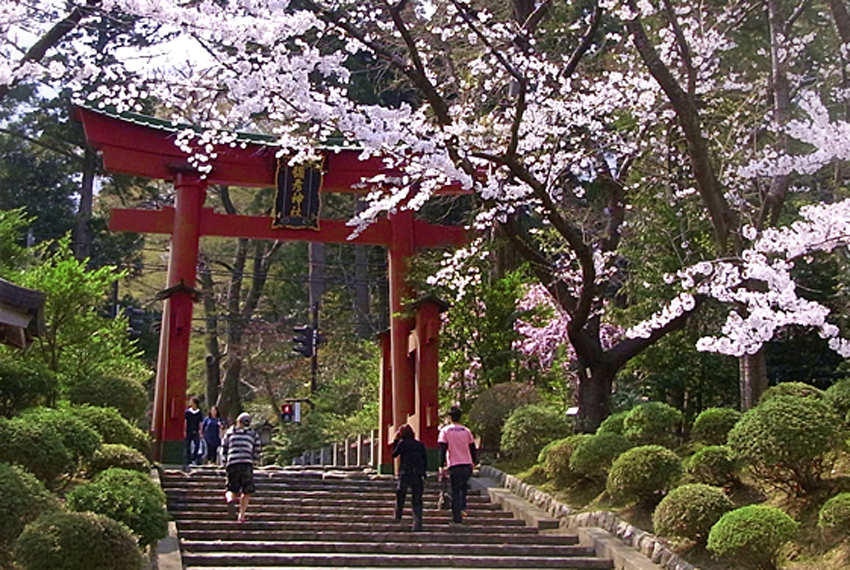 【彌彥神社】(賞櫻預估時間4月中旬~4月下旬)是越後第一大宮殿,自古就是當地居民的敬奉之地,供奉傳授人們捕魚、農耕、製鹽之術的天香山命,是全日本供奉天孫的總神社。座落於彌彥山腳下,環境清幽,春天櫻花盛開,漫步於參道與境內步道,能欣賞粉色花海與古樸建築交織的景致。彌彥神社規模宏大,從百年檜木打造的大鳥居、整塊石頭搭建的橋樑欄杆,到寶物殿內珍藏的文物,都能感受到其歷史底蘊與文化價值。